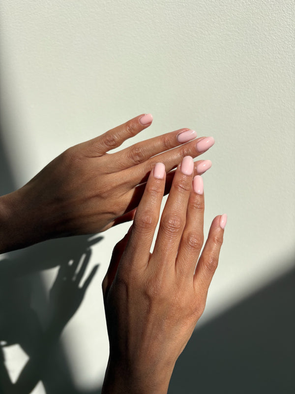 A detailed dry manicure including nail shaping, cuticle work and strengthening base application, finished with nourishing cuticle oil for a clean, natural look (no colour).